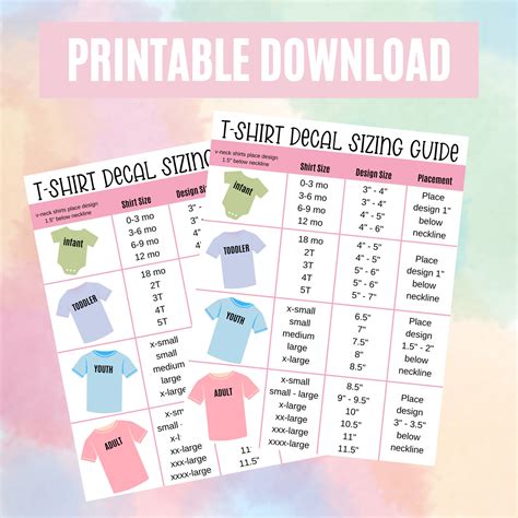 Printable HTV Sizing Chart Cricut Cheat Sheet Decal Size Etsy in 2023