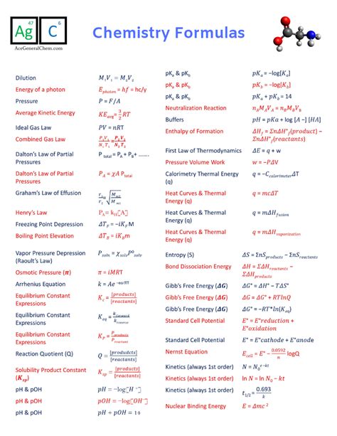 Formula Cheat Sheet for General Chemistry Blinn College Learning