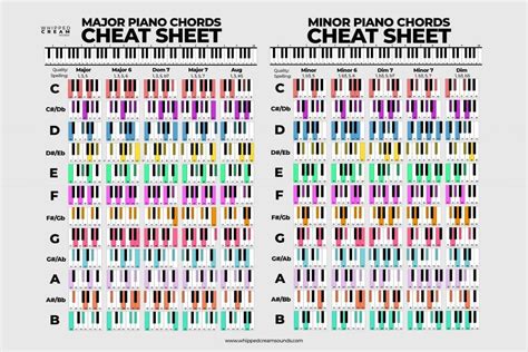 Chord Cheat Sheet Piano. Web so here is a list with the most common piano chords: Learn how to play all piano chords with a free, downloadable chord chart pdf with complete chord formulas.