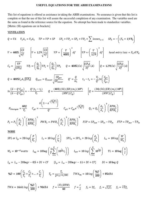 Cih Equation Sheet. This list of equations is offered as assistance in. Useful equations for the abih examinations.