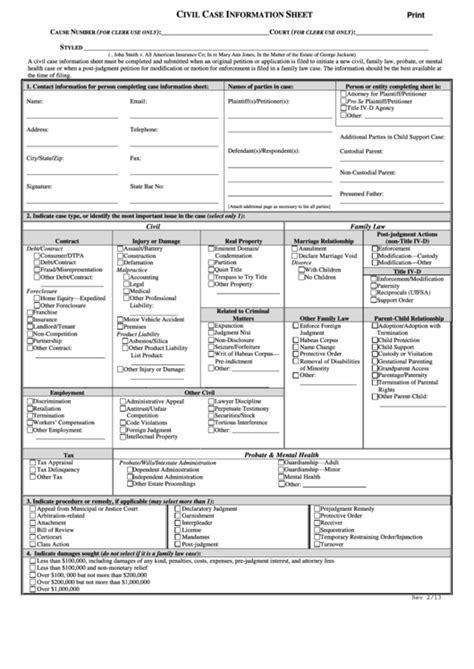 Web a civil case information sheet must be completed and submitted when an original petition or application is filed to initiate a new civil, family law, probate, or mental. Web all amertcan insurance co: Web civil case cover sheet. Web a civil case information sheet must be completed and submitted when an original petition or application is filed to initiate a new civil, family law, probate, or mental. In the matter of the estate ofgeorge jackson) a civil case information sheet must be completed and submitted when an. Filed at the beginning of all civil cases except family. In re mary ann jones: