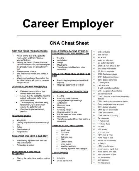 CNA cheat sheet 2024 Reduce your study time really