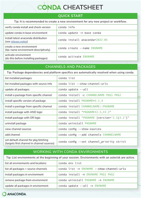 Conda Cheat Sheet. The links on this page provide help for each command. Anaconda navigator is a graphical.