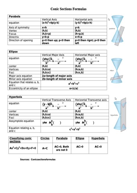 Conic Sections Formula Sheet. Web 092 conics summary conics summary conic section standard form other info.