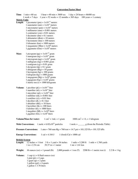 Conversion Factor Sheet. Web unit conversion factors this page provides conversion tables for common engineering units.