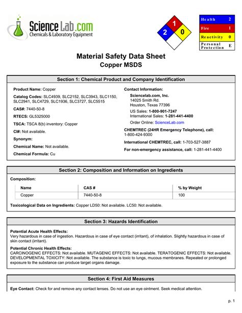 Copper is stable and not considered reactive under normal temperatures and pressures. Hazardous polymerization or runaway reactions will not occur. Relevant identified uses of the substance or mixture and uses advised. Identification of the substance/mixture and of the supplier. Web safety data sheet: Copper, granular, 50 mesh, manufacturer/supplier trade name: