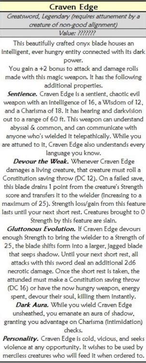 Craven Edge Sheet. Web craven edge is a sentient, chaotic evil weapon with an intelligence of 16, a wisdom of 12, and a charisma of 18.