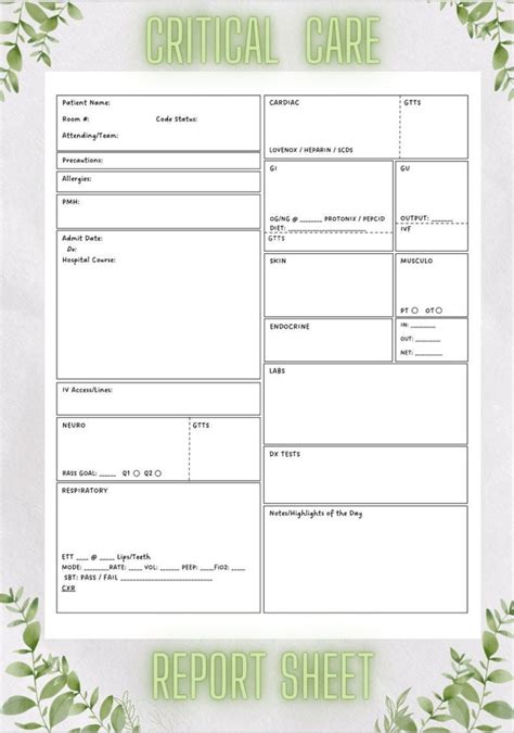 Critical Care Report Sheet. Web an icu (intensive care unit) report sheet template is a structured document used by healthcare. Web the ultimate guide to creating an icu report sheet (for new critical care nurses and rn students) | nursing.com