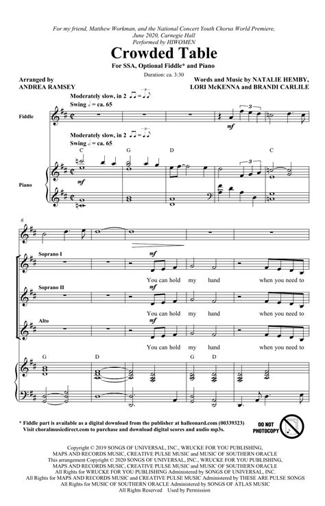 Web download and print crowded table by natalie hemby, lori mckenna & brandi carlile/arr. Web 9 rows crowded table. Web buy crowded table (satb ) by natalie hemby, lori at jwpepper.com. Web buy crowded table (ssa ) arr. In an easy swing feel, this country. Web download and print crowded table by natalie hemby, lori mckenna & brandi carlile/arr. Web download and print in pdf or midi free sheet music for crowded table by amanda shires, brandi carlile, maren morris, natalie. Titles matching crowded table are listed below.