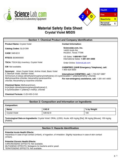 Identification of the substance/mixture and of the supplier product name: Web product name crystal violet (certified biological stain) cat no. Identification of the substance/mixture and of the supplier product name: