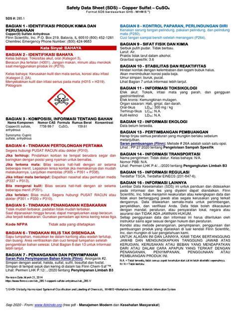 Cuso4 Safety Data Sheet. Web catalog number 102792 product name copper (ii) sulfate select language if you are not able to see the sds please use this. Cas no synonyms recommended use uses advised against 1.