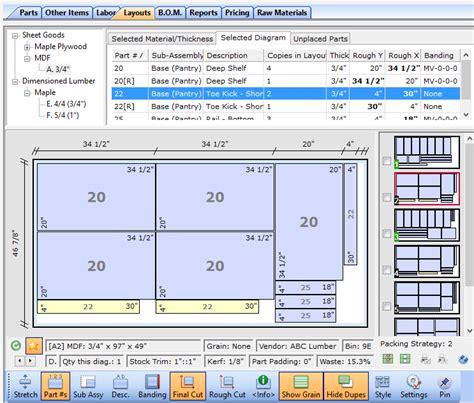 Web powerful cutlist optimizer designed to find optimal cut layouts. Type the sheet length and width, cutting kerf and required panel.