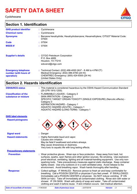 Cyclohexene Safety Data Sheet. Web safety data sheet version 6.6 revision date 12/21/2023 print date 12/22/2023 section 1: Hazard(s) identification classification this chemical is considered hazardous by the 2012 osha hazard communication.