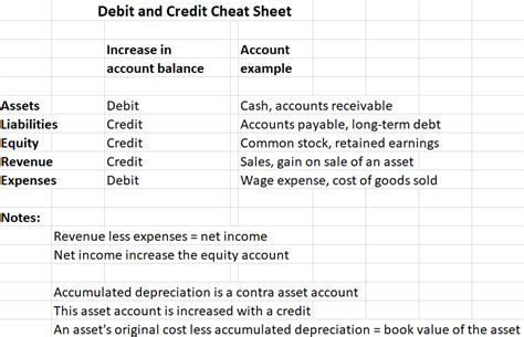 Printable Debits And Credits Cheat Sheet