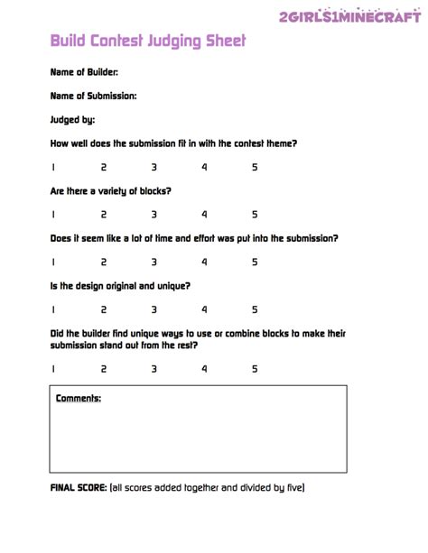 Printable Decorating Contest Score Sheet