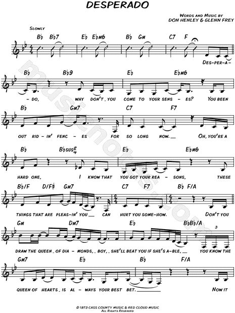 Desperado Sheet Music Marc Jordan Lead Sheet / Fake Book