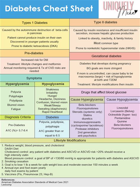Diabetic Cheat Sheet. Web screening and diagnosis of diabetes mellitus 2024.