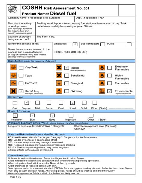 Diesel Coshh Data Sheet. Wfs/ watson fuels/ auto diesel/ 01 version: