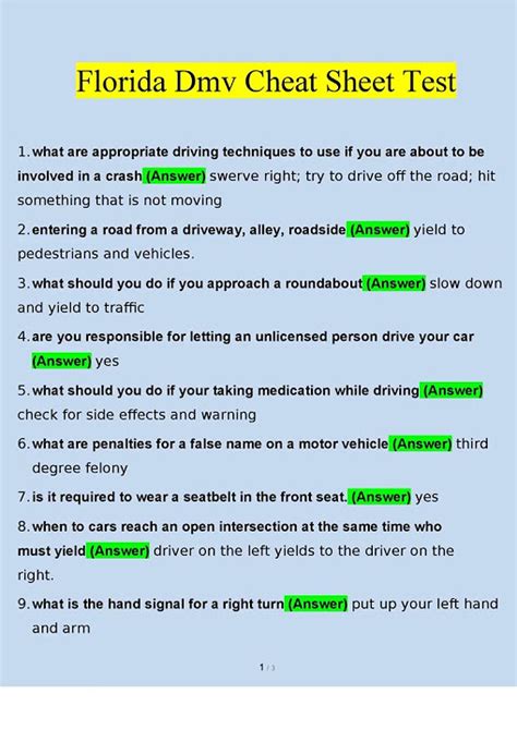 Dmv Cheat Sheet Florida. 0/40 start practice test 5 questions: 0/40 start practice test 4 questions: