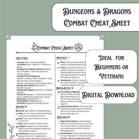 D&d 5e Combat Cheat Sheet Cheat Sheet