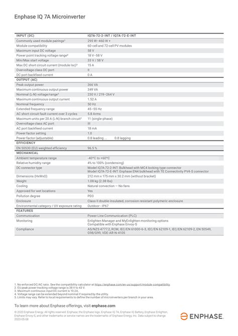 Enphase Iq7A Spec Sheet. Web review specifications for the enphase iq 7a microinverter.