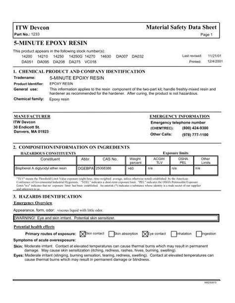 Epoxy Resin Safety Data Sheet. Web product identifier product name: Chemical product and company identification product identifier: