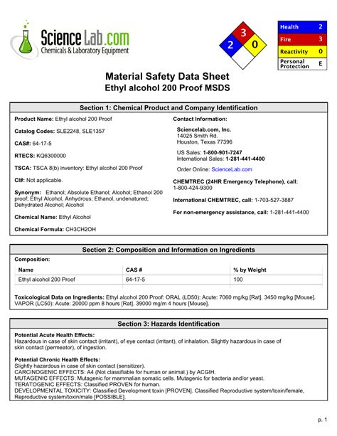 Ethyl Alcohol Safety Data Sheet. Web safety data sheet version 8.10 revision date 08/09/2023 print date 01/06/2024 section 1: