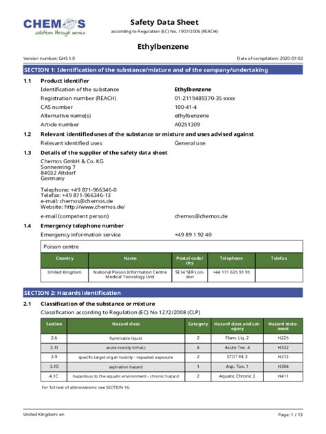 Ethylbenzene Safety Data Sheet. 3.0 en replaces version of: