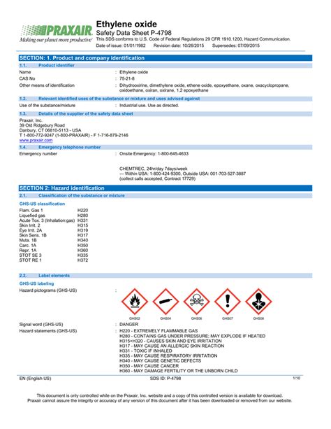 Ethylene Oxide Safety Data Sheet. Web ethylene oxide revision date : Eto is used in the manufacture of ethylene glycol, surfactants,.