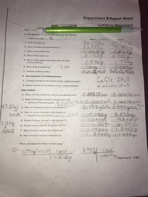 Experiment 8 Report Sheet Limiting Reactant. _____ name _____ desk no. Web experiment 8 prelaboratory assignment limiting reactant.