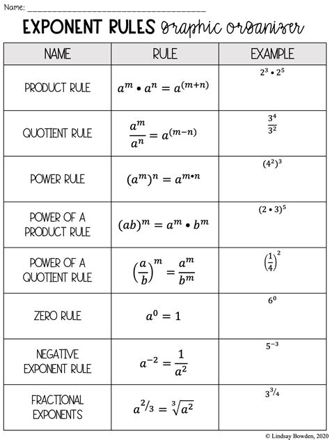 Rules of Exponents or Laws of Exponents Learning mathematics
