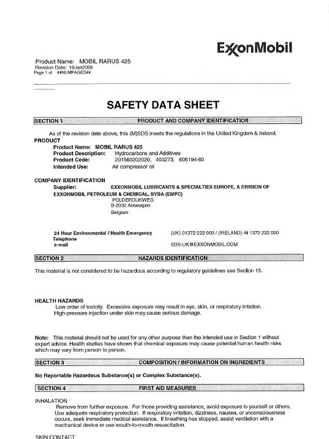 Exxonmobil Safety Data Sheet. Web for information on how to safely handle, use and store an exxon or mobil fuel or chemical, please refer to its specific material safety. All (change) can't find your sds document?