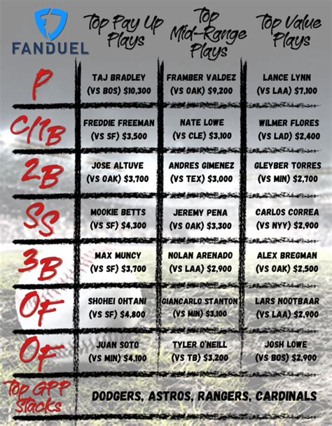 Fanduel Cheat Sheet Mlb. Web 13 rows welcome to our friday mlb dfs cheat sheet! The nba prizepicks cheat sheet has arrived!