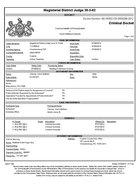 Web the secure web docket sheet option provides access to search, view and print docket sheets that contain additional. You may choose to view the. Web docket sheets common pleas docket sheets are maintained by the unified judicial system of pennsylvania. Web docket sheet this report allows you to access the docket sheet for a particular case. Web the main type of record the federal courts create and maintain is a case file, which contains a docket sheet and all. Web the secure web docket sheet option provides access to search, view and print docket sheets that contain additional.