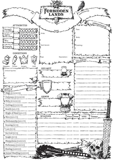 Forbidden Lands Character Sheet. These links go to the free league web site, so if they break let me know. Web i though i would share a handy little handout for players and gms learning their way around the forbidden lands.