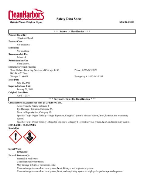 Glycol Safety Data Sheet. Web 3 rows safety data sheet ethylene glycol (100%) revision date: Web 6 rows product name ethylene glycol cat no.