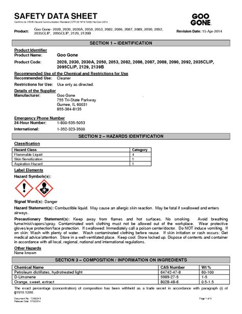 According to the hazardous products regulation (february 11, 2015) 02/16/2017. According to the hazardous products regulation (february 11, 2015) 02/16/2017. Web material safety data sheet goo gone® liquid 1 / 6 august 14, 2014.