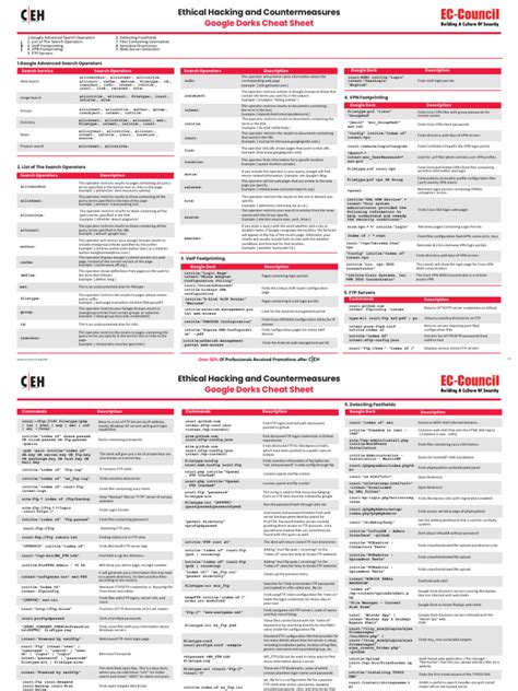 Searches for a particular filetype mentioned in the query. Google dorks can help you uncover leaked passwords and sensitive data, let you view neighborhoods from unsecured cameras, access files not. In this google dorking cheat sheet, we’ll walk you through different commands to. Web we offer you, the ultimate google dorking cheat sheet, for 2023! Searches for a particular filetype mentioned in the query. This document aims to be a quick reference outlining all google operators, their meaning, and examples of. In this article, we have put. Web google dorking hacking and defense cheat sheet. Web download google dorks cheat sheet pdf for quick references google dorks cheat sheet.