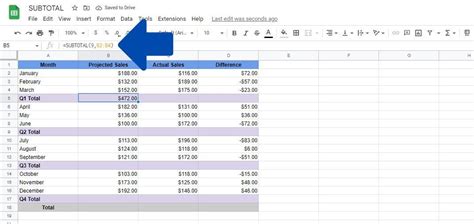 Dynamic Subtotal formula in Google Sheets