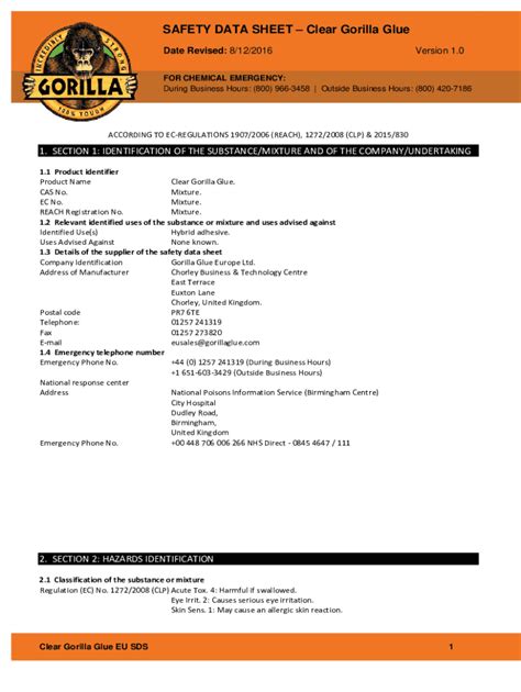 Gorilla Glue Safety Data Sheet. May cause allergy or asthma symptoms or breathing. May cause an allergic skin reaction.