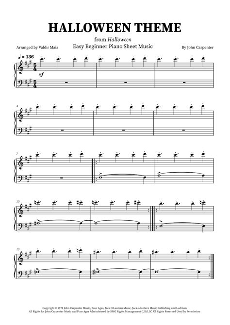 Halloween Theme Piano Sheet. It's an accurate, playable piano arrangement of the full. Share, download and print free sheet music for piano, guitar, flute and more with the.