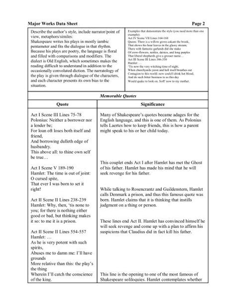 Hamlet Major Works Data Sheet. Act i in box below, write (bullet points are fine) a summary of some of the major events of this act. Web ap english literature and composition major works data sheet.