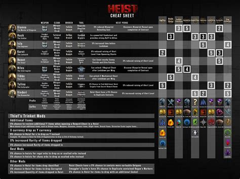 It allows to have vinderi dublicating items with 23 or. Web it might be a revelation for ur cheat sheets but there are +1 to level of all jobs/main job on tools that you can roll, i.e. Prioritize avoiding guards and alarms. Grand heist blueprints have a similar but different set. Web 1 the rogue harbour 2 mechanics 2.1 preparation 2.2 infiltration 2.3 imminent lockdown 2.4 lockdown 2.5 portal 2.6 death 2.7 experience 3 rogues 3.1. It allows to have vinderi dublicating items with 23 or. Wherever applicable, we will also give softcore. Web a super handy cheatsheet, for all things heist. This guide will show you how to perform a regular contract. Use distraction skills, smoke bombs, and alternative routes to navigate unseen. Trust me, you will want to bookmark this one immediately!