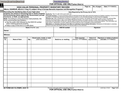 Army High Dollar Value Sheet PDF Form FormsPal