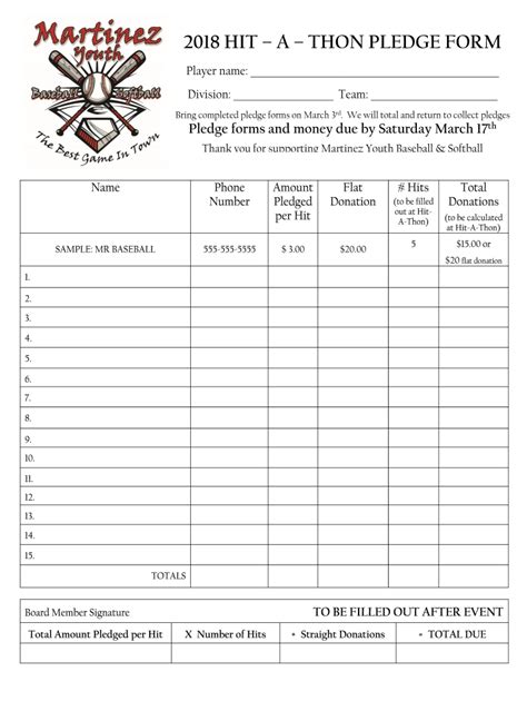 We will total hits/pledges and return to. Bring completed pledge forms on may 2nd & 16th. Web the hit a thon form is an excel spreadsheet that can help you organize your batting practices.