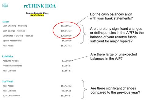 Hoa Balance Sheet. It shows the financial status of the hoa at a particular moment in time. It details the assets (what the hoa.