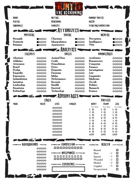 Hunter The Reckoning Character Sheet. The reckoning 5th edition roleplaying game. When building the sheet, the.