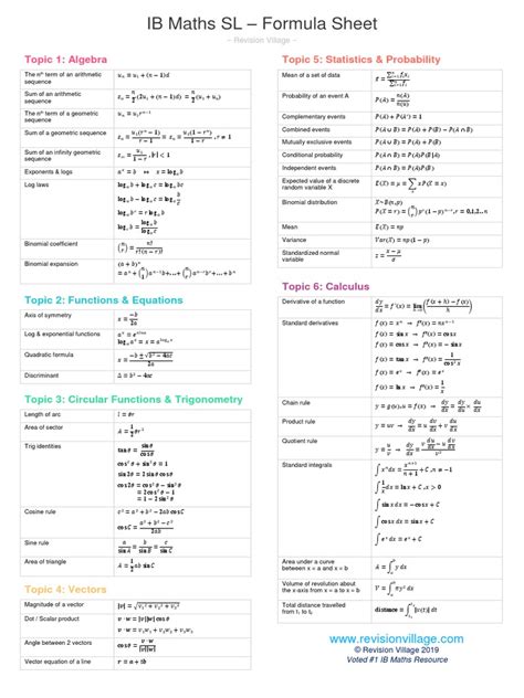 Ib Math Sl Formula Sheet. Web [2023 updated] ib mathematics analysis and approaches (aa) formula booklet (sl & hl). Web fv = pv × 1 + r 100 k , where fv is the future value, pv is the present value, n is the number of years, k is the number of.