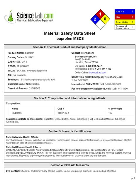Ibuprofen Msds Sheet. Stot se 4 (oral) 2a 3 (irritating to acute toxicity serious eye damage/eye. 1907/2006 version 6.5 revision date 15.06.2023 print date 16.01.2024 generic.
