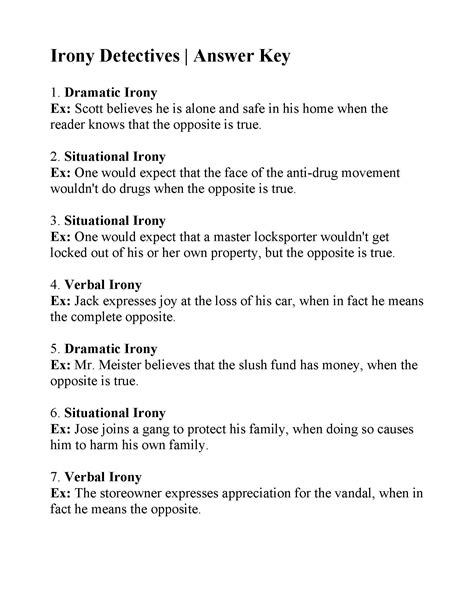 Irony Detectives Answer Sheet. Web here's a fun irony activity. Here is a great worksheet to help students practice or review irony.
